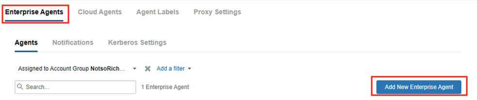 Click on the Enterprise Agents tab and click Add New Enterprise Agent from the menu