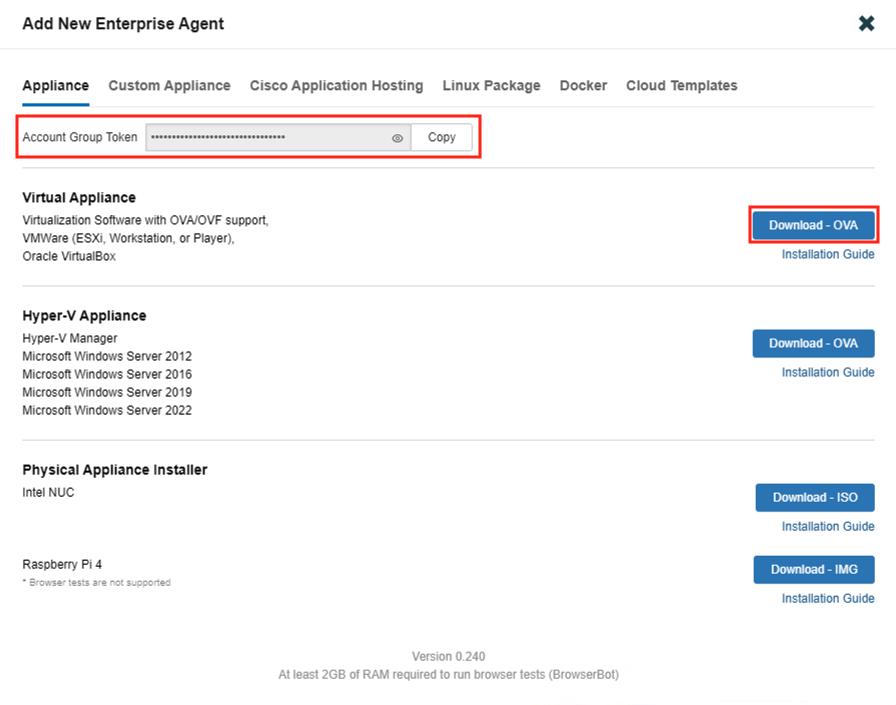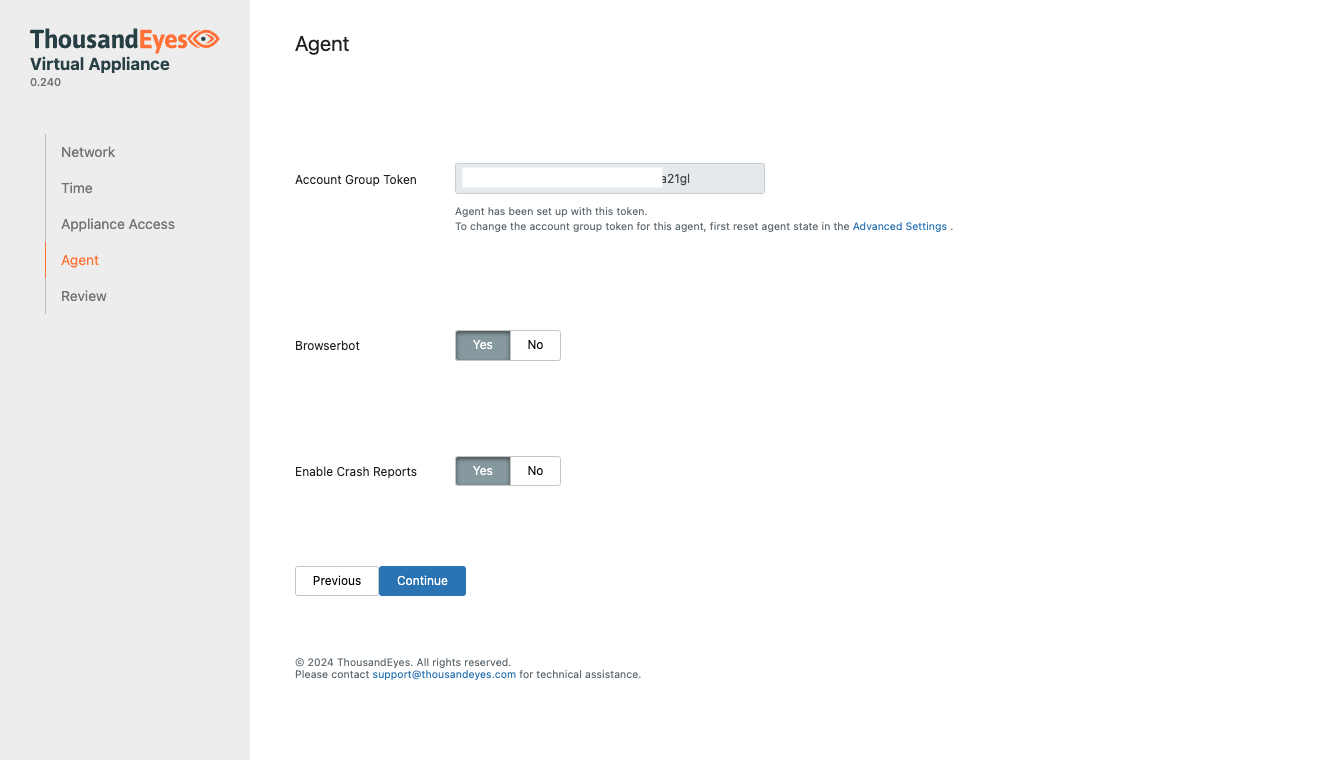 Click on the Agent tab and paste the Account Group Token saved earlier.