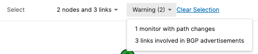 - Clicking on the warning details will automatically isolate the affected nodes in the path trace: